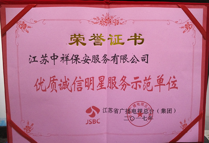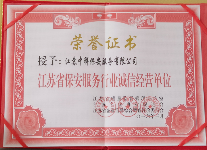 江蘇中祥保安服務有限公司是經江蘇省公安局廳,市公安局批準的具有合法資質的保安服務公司,屬上海智成旗下子公司,我司從2003年以來至今已有十幾年的管理經驗,多年來一直專業(yè)從事企業(yè)安全外包、大型活動現場保衛(wèi)、長短期保鏢、緊急危機處理、技術防范等全面安全事務管理服務,保潔服務,物業(yè)管理服務,取得了驕人的業(yè)績,并受到客戶的高度贊揚。
